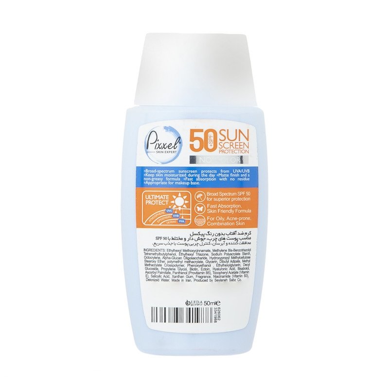 کرم ضد آفتاب بی رنگ پیکسل SPF50 مدل Oily Acne-Prone Skin حجم 50 میلی لیتر